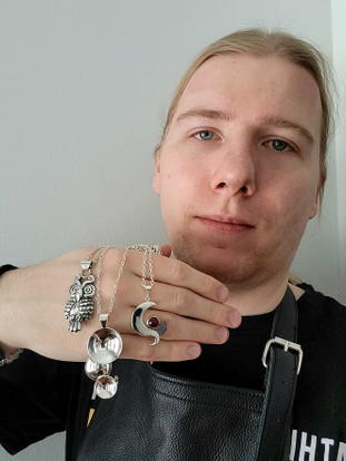 Terve! Olen Ilkka Jääskeläinen, suunnittelen ja valmistan korut joita myyn täällä nettisivullani. Korut valmistan käsityönä pienessä työtilassa Oulussa. Alkusysäyksen luovuuteen ja käsitöihin sain Limingan taidekoulusta. Opiskelin siellä vuosina 2017-2019, vietin pitkiä päiviä erilaisten taiteiden parissa ja lopulta hullaannuin kuvanveistoon. Tässä yhdistyi luovuus ja käsityöt täydellisessä harmoniassa. Pronssivalukurssilla tein ensimmäisen pronssikoruni, josta innostus korujen tekemiseen alkoi. Hiljalleen sisälläni kypsyi idea siitä, miten voisin yhdistää luovuuden ja käsityöt yhteen ammattiin. Lopulta tämä ajatus sai tuulta alleen ja opiskelin koruartesaaniksi Oulun ammattiopistossa vuosina 2021-2023. Täällä sain tarvittavat opit työskentelyyn korualalla. Taidekoulun vapaus ja luovuus yhdistettynä korualan kauneuteen ja kädentaitoihin. Tälle pohjalle uskalsin perustaa yritykseni ja tässä ollaan. Lämpimästi tervetuloa selaamaan valmistuneita koruja. Jos mieltäsi askarruttaa jokin tai jos mielessäsi on ihan oma koruidea niin ota rohkeasti yhteyttä! Selvitetään tarpeesi ja toteutetaan unelmasi.
